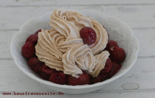 Quirlen des Handrührers verrühren. Sahne steif schlagen und