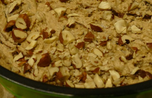 zweiten Teigschicht mischen, abschließend die übrigen Nüsse auf die Oberfläche streuen.