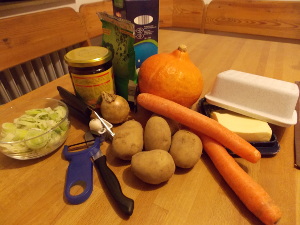 Zutaten für die Kürbiscremesuppe mit Kartoffeln |