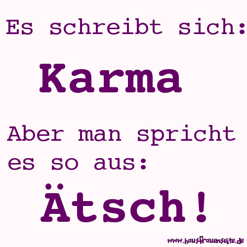 An manchen Tagen habe ich so gar keine Ahnung, wie es nur weitergehen soll. Aber an allen Tagen geht es immer weiter! Liebe Mütter: Ihr könnt nur 2 der Dinge auf der Liste haben! Wählt weise: - ein sauberes Heim - glückliche Kinder - nicht wahnsinnnig werden Es schreibt sich KARMA, aber man spricht es ÄTSCH! aus Im Sommer unterscheidet man 3 Arten Männer: die die duschen, die die baden, die die sich direkt neben dich setzen! Ich bin ja so froh, dass Spinnen nicht fliegen können!