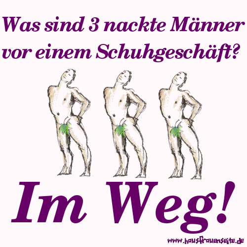Ich glaube, ich habe einen Hexenschuss! - Echt? Die schießen auf die eignen Leute? Mama, haben wir auch was im Kühlschrank, was nicht dick macht? Klar! Ich kann Dir ein paar Eiswürfel auftauen! Liebe Männer, vergesst Nashorn-Hörner! Was sind 3 nackte Männer vor einem Schuhgeschäft? Lustig! Behandelt man Menschen so, wie sie einen behandeln, sind sie oft beleidigt.